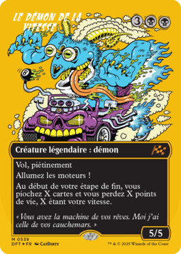 Flying, trample Start your engines At the beginning of your end step, you draw X cards and lose X life, where X is your speed.
