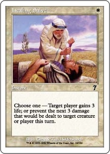 • Healing Salve - Duel Decks: Divine vs. Demonic (Commune) Healing Salve - Eighth Edition (Commune) Healing Salve - Seventh Edition (Commune) Healing Salve - Classic Sixth Edition (Commune) Healing Salve - Urza's Saga (Commune) Healing Salve - Fifth Edition (Commune) Healing Salve - Mirage (Commune) Healing Salve - Fourth Edition (Commune) Healing Salve - Revised Edition (Commune) Healing Salve - Unlimited Edition (Commune) Healing Salve - Limited Edition Beta (Commune) Healing Salve - Limited Edition Alpha (Commune)