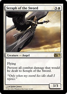 Prevent all combat damage that would be dealt to Seraph of the Sword.