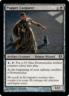 : Mettez en jeu un jeton de créature-artefact 0/1 bleue Homoncule.