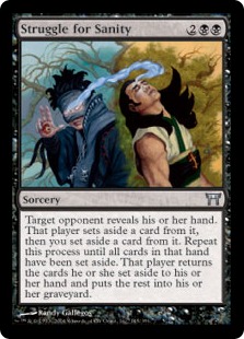 • Target opponent reveals his or her hand. That player sets aside a card from it, then you set aside a card from it. Repeat this process until all cards in that hand have been set aside. That player returns the cards he or she set aside to his or her hand and puts the rest into his or her graveyard.