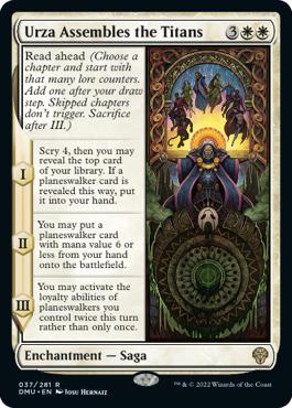 • Read ahead (Choose a chapter and start with that many lore counters. Add one after your draw step. Skipped chapters don't trigger. Sacrifice after III.)