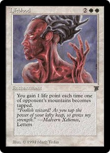 You gain 1 life point each time one of opponent's mountains becomes tapped.