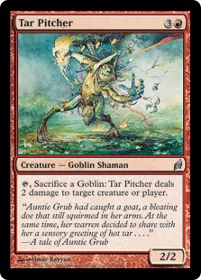 , Sacrifice a Goblin: Tar Pitcher deals 2 damage to target creature or player.