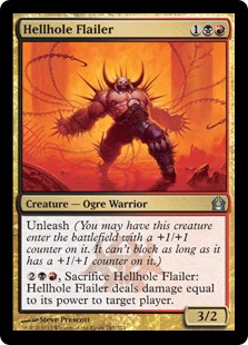 , Sacrifice Hellhole Flailer: Hellhole Flailer deals damage equal to its power to target player.