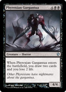• When Phyrexian Gargantua enters the battlefield, you draw two cards and you lose 2 life.