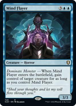 • Dominate Monster — When Mind Flayer enters the battlefield, gain control of target creature for as long as you control Mind Flayer.