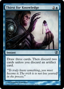 Piochez trois cartes. Défaussez-vous ensuite de deux cartes à moins que vous ne vous défaussiez d'une carte d'artefact.