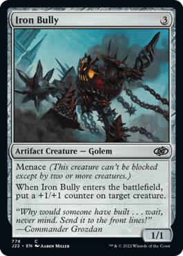 Menace When Iron Bully enters the battlefield, put a +1/+1 counter on target creature.
