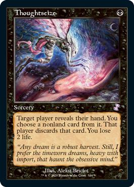 • Target player reveals their hand. You choose a nonland card from it. That player discards that card. You lose 2 life.