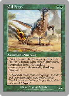 , echo, fading 3, bands with other Dinosaurs, protection from Homarids, snow-covered plainswalk, flanking, rampage 2