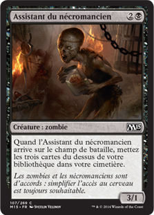 • Quand l'Assistant du nécromancien arrive sur le champ de bataille, mettez les trois cartes du dessus de votre bibliothèque dans votre cimetière.