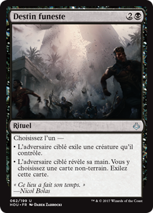 Choisissez l'un — • L'adversaire ciblé exile une créature qu'il contrôle. • L'adversaire ciblé révèle sa main. Vous y choisissez une carte non-terrain. Exilez cette carte.