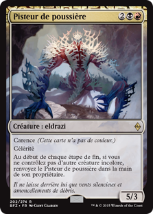 Au début de chaque étape de fin, si vous ne contrôlez pas d'autre créature incolore, renvoyez le Pisteur de poussière dans la main de son propriétaire.