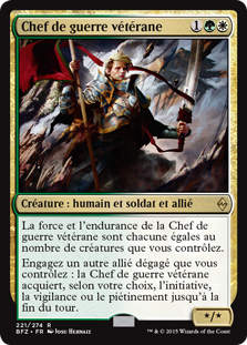 La force et l'endurance de la Chef de guerre vétérane sont chacune égales au nombre de créatures que vous contrôlez.