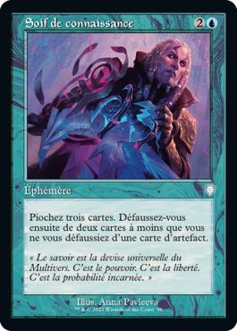 Draw three cards. Then discard two cards unless you discard an artifact card.
