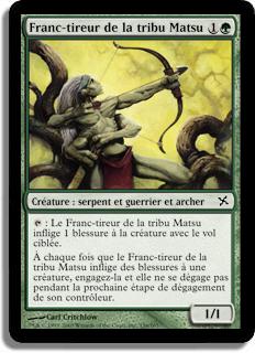 : Le Franc-tireur de la tribu Matsu inflige 1 blessure à la créature avec le vol ciblée.