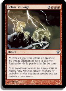 • Mettez en jeu trois jetons de créature 3/1 rouge Élémental avec la célérité. Retirez-les de la partie à la fin du tour.