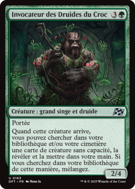 Quand cette créature arrive, vous pouvez chercher dans votre bibliothèque et/ou votre cimetière une carte de créature sans capacité, la révéler et la mettre dans votre main. Si vous cherchez dans votre bibliothèque de cette manière, mélangez.