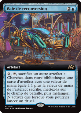 , Sacrifice another artifact: Search your library for an artifact card with mana value equal to 1 plus the sacrificed artifact's mana value, put that card onto the battlefield, then shuffle. Activate only as a sorcery.Cet espace est réservé aux membres enregistrés sur MTG Addict.