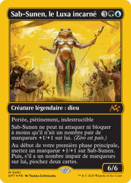 Au début de votre première phase principale, mettez un marqueur +1/+1 sur Sab-Sunen. Puis, s'il a un nombre impair de marqueurs sur lui, piochez deux cartes.