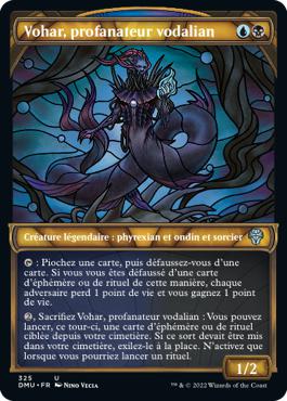 , Sacrifiez Vohar, profanateur vodalian : Vous pouvez lancer, ce tour-ci, une carte d'éphémère ou de rituel ciblée depuis votre cimetière. Si ce sort devait être mis dans votre cimetière, exilez-le à la place. N'activez que lorsque vous pourriez lancer un rituel.