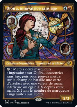 : Mettez deux marqueurs « ingénuité » sur Djoïra, innovatrice sans âge, puis vous pouvez mettre sur le champ de bataille une carte d'artefact avec une valeur de mana inférieure ou égale à X depuis votre main, X étant le nombre de marqueurs « ingénuité » sur Djoïra.