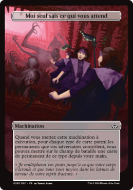 • Quand vous mettez cette machination à exécution, pour chaque type de carte parmi les permanents que vos adversaires contrôlent, vous pouvez mettre sur le champ de bataille une carte de permanent de ce type depuis votre main.