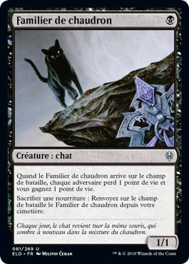 Quand le Familier de chaudron arrive sur le champ de bataille, chaque adversaire perd 1 point de vie et vous gagnez 1 point de vie. Sacrifiez une nourriture : Renvoyez sur le champ de bataille le Familier de chaudron depuis votre cimetière.