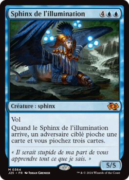 Quand le Sphinx de l'illumination arrive, un adversaire ciblé pioche une carte et vous piochez trois cartes.