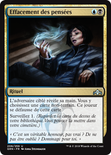 L'adversaire ciblé révèle sa main. Vous y choisissez une carte non-terrain. Ce joueur se défausse de cette carte. Surveillez 1. (Regardez la carte du dessus de votre bibliothèque. Vous pouvez la mettre dans votre cimetière.)