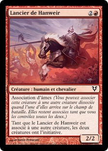 Tant que le Lancier de Hanweir est associé à une autre créature, les deux créatures ont l'initiative.