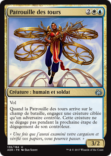 Vol Quand la Patrouille des tours arrive sur le champ de bataille, engagez une créature ciblée qu'un adversaire contrôle. Cette créature ne se dégage pas pendant la prochaine étape de dégagement de son contrôleur.
