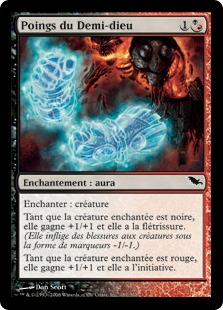 Tant que la créature enchantée est noire, elle gagne +1/+1 et elle a la flétrissure. (Elle inflige des blessures aux créatures sous la forme de marqueurs -1/-1.) Tant que la créature enchantée est rouge, elle gagne +1/+1 et elle a l'initiative.