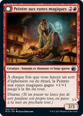 • Peintre aux runes magiques -> Hurleuse aux runes magiques - Innistrad : Chasse de Minuit (Peu commune) Peintre aux runes magiques -> Hurleuse aux runes magiques - Innistrad : Chasse de Minuit (Peu commune)