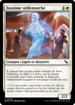 À chaque fois qu'une autre créature de force inférieure ou égale à 2 arrive sur le champ de bataille sous votre contrôle, le Fantôme veillemarché acquiert le vol jusqu'à la fin du tour.