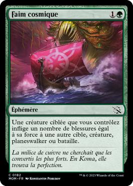 If either target is an illegal target as Cosmic Hunger tries to resolve, the creature you control won’t deal damage. [0000-00-00]