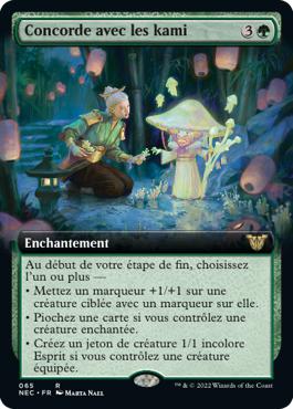 Au début de votre étape de fin, choisissez l'un ou plus — • Mettez un marqueur +1/+1 sur une créature ciblée avec un marqueur sur elle. • Piochez une carte si vous contrôlez une créature enchantée. • Créez un jeton de créature 1/1 incolore Esprit si vous contrôlez une créature équipée.
