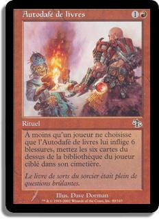 • Unless a player has Book Burning deal 6 damage to him or her, put the top six cards of target player's library into his or her graveyard.