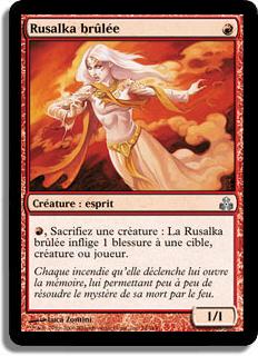 , Sacrifiez une créature : La Rusalka brûlée inflige 1 blessure à une cible, créature ou joueur.