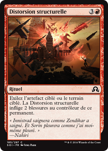 • Exilez l'artefact ciblé ou le terrain ciblé. La Distorsion structurelle inflige 2 blessures au contrôleur de ce permanent.