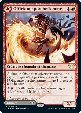 : L'Officiante parcheflamme gagne +2/+0 jusqu'à la fin du tour.
