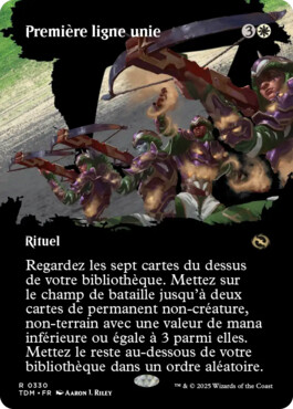 Regardez les sept cartes du dessus de votre bibliothèque. Mettez sur le champ de bataille jusqu'à deux cartes de permanent non-créature, non-terrain avec une valeur de mana inférieure ou égale à 3 parmi elles. Mettez le reste au-dessous de votre bibliothèque dans un ordre aléatoire.