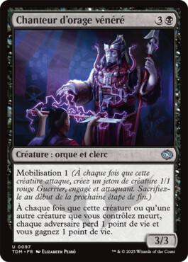Mobilisation 1 (À chaque fois que cette créature attaque, créez un jeton de créature 1/1 rouge Guerrier, engagé et attaquant. Sacrifiez-le au début de la prochaine étape de fin.) À chaque fois que cette créature ou qu'une autre créature que vous contrôlez meurt, chaque adversaire perd 1 point de vie et vous gagnez 1 point de vie.