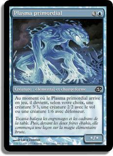 Au moment où le Plasma primordial arrive en jeu, il devient, selon votre choix, une créature 3/3, une créature 2/2 avec le vol ou une créature 1/6 avec défenseur.