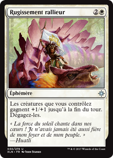 Rallying Roar affects only creatures you control at the time it resolves. Creatures you begin to control later in the turn won’t get +1/+1. [2017-09-29]