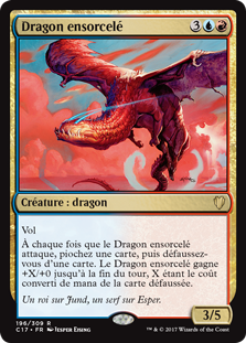 Vol À chaque fois que le Dragon ensorcelé attaque, piochez une carte, puis défaussez-vous d'une carte. Le Dragon ensorcelé gagne +X/+0 jusqu'à la fin du tour, X étant le coût converti de mana de la carte défaussée.