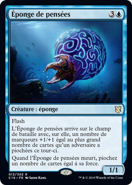 Flash L'Éponge de pensées arrive sur le champ de bataille avec, sur elle, un nombre de marqueurs +1/+1 égal au plus grand nombre de cartes qu'un adversaire a piochées ce tour-ci. Quand l'Éponge de pensées meurt, piochez un nombre de cartes égal à sa force.