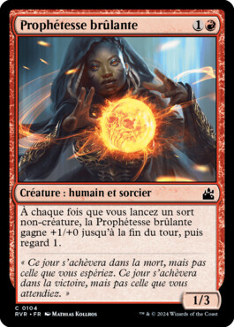 Whenever you cast a noncreature spell, Burning Prophet gets +1/+0 until end of turn, then scry 1.