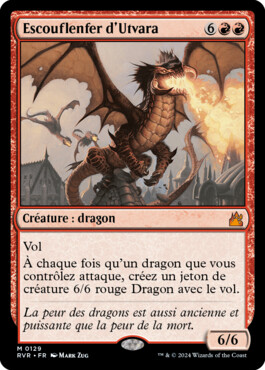À chaque fois qu'un dragon que vous contrôlez attaque, créez un jeton de créature 6/6 rouge Dragon avec le vol.
